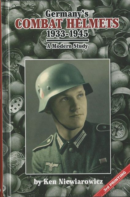 GERMANY'S COMBAT HELMETS 1933-1945 BY Ken Niewiarowicz. Hardcover, 468 pages with color images. Over 700 full color photographs provide an immense amount detail on Germany's Helmets of World War II. In what is probably the most complete study to date, the author chronological presents many fine examples which explain the design, fabrication, use, and modification of this equipment. Standard infantry helmets as well as tropical, parachute and special soldier Helmets are shown. Well illustrated.