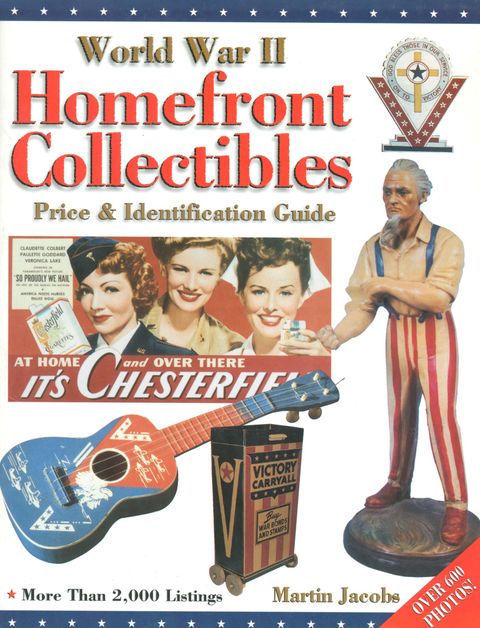 WORLD WAR II HOMEFRONT COLLECTIBLES, PRICE AND IDENTIFICATION GUIDE. By M. Jacobs. 208 pages, 8½”x 11”, soft cover. Covers the war related keepsakes and novelties produced 1941-1945. Includes Jewelry, Postcards, Movie Posters, Matchbooks, Banks, Statues, Toys, Games, Trading Cards, Books, Magazines and Anti-Axis Memorabilia – It’s all here, profusely Illustrated with more than 600 black and white photos, 16 page color section with over 60 color photos. Contains more than 2000 accurate and detailed price listings.............