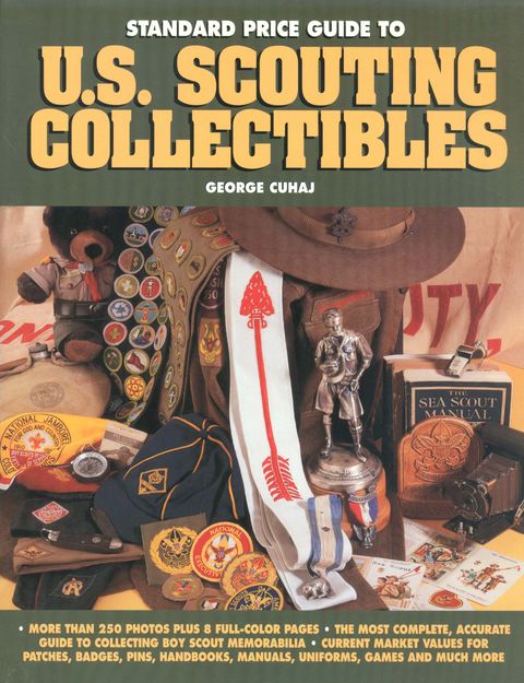 STANDARD PRICE GUIDE TO U.S. SCOUTING COLLECTIBLES. By G. Cuhaj. 328 pages, 8½”x 11”, soft cover. Complete guide to Boy Scout collectibles. Learn to identify Rank and Office patches, Pins, Award Medals, Handbooks, Manuals, Medallions, Uniforms, Storybooks, Games, Greeting Cards, Calendars, Membership Cards and Cameras. Also covers Cub Scouts, Explorers and Sea Scouts. More than 250 photos plus 8 pages in color. Lists current market value for over 5,700 items.