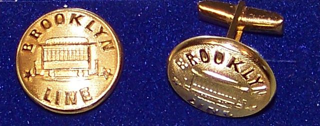BROOKLYN LINE, OLD STYLE TROLLEY, American military buttons, struck from original dies, 24K gold plated, are expertly constructed into modern cuff links. A fine collection representing our nation's heritage and historic military past. Gift packaged. Per Pair, Reproduction.