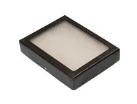 4 ¼”x 3 ¼”. Premier Quality Specimen Mounting Case. Ideal to display your collection of insignia and other unique artifacts. Provides an economical means to organize and protect your collectables. Protects from dust, damage, and fingerprints. Each case is made of chipboard with black leatherette cover, contains a glass lid, and has white polyester filler. Also features pinned sides to hold the lids securely in place. Frame is ¾ inches deep.