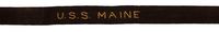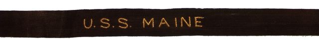 U.S.S. MAINE HATBAND, Gold Embroidered Ship's Name On 1 1/2" Black Grosgrain Ribbon. 38 " Long With Wing Cut Ends, Reproduction.