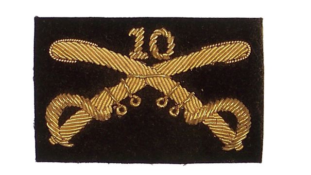 10TH CAVALRY, Crossed Sabers with Numeral 10, Embroidered, Reproduction.