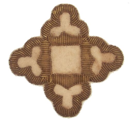 18th CORPS, 2nd Division, White. Velvet Background with Gold Bullion Borders. Approximatly Size is 2 inches, Reproduction.