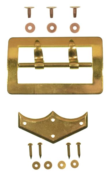 CIVIL WAR CARBINE SLING KIT. Double Tongue Brass Buckle. Brass Sling Tip, 3 Copper Rivets & Burrs and 4 Brass Rivets and Burrs. Kit, Reproduction.