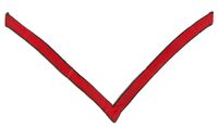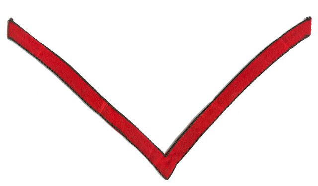 M1872 ARTILLERY LANCE CORPORAL CHEVRON. Red With Black Facing,1 Stripe, Original. Sold in units of one (1) each.