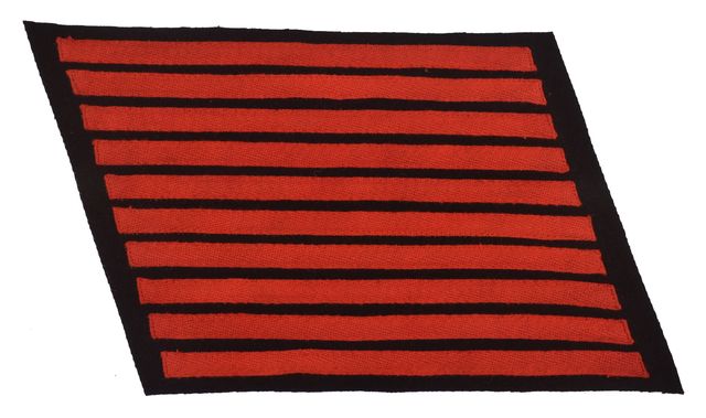 UNION ARTILLERY, Red Stripes on Dark Blue Background. Service Stripes are manufactured of wool with cotton overlays. Each stripe is 9 ¾ inches long by ½ inch wide. Each stripe denotes 5 years of service. Stripes are sold in panels of ten and can be easily cut to your requirement. Ideal for Skirmishers, Reenactors & Historical Associations.