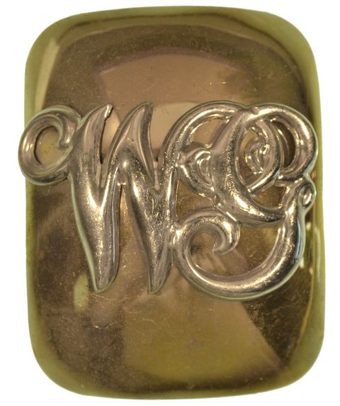 CIRCA 1880'S WASHINGTON GREY'S CARTRIDGE BOX CROSS STRAP PLATE. Die Struck Brass with Nickel Silver Script WG. With Attaching Wires, Original.