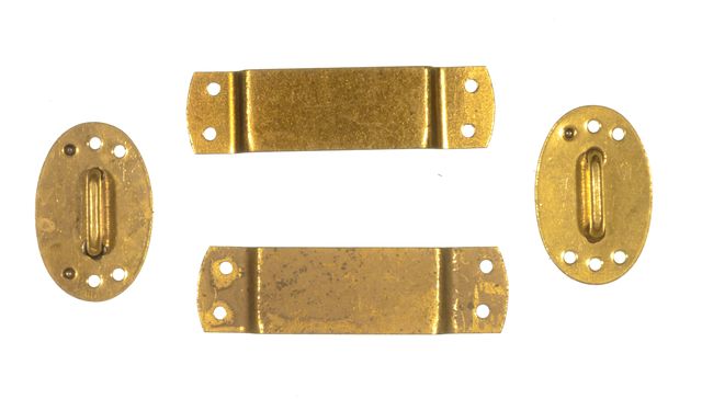 SHOULDER SCALE KNOT OR BOARD FASTENERS, N.O.S. from M.C. Lilley & Co, Brass with 2 sewing holes, Per Pair, Original.