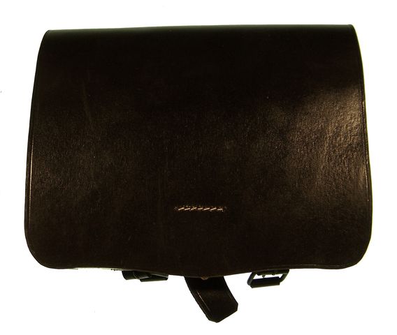 REGULATION CW .69 CALIBER CARTRIDGE BOX. Black Leather with 2 Belt Loops and Pocket for Cartridge Papers. Complete with Cartridge Tins, Reproduction.