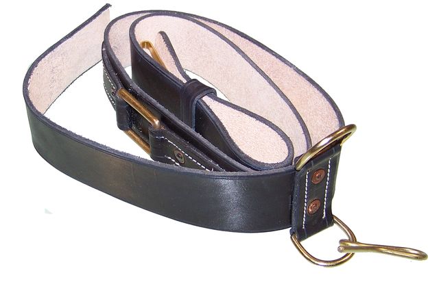 C.W. EM SABRE BELT. Black Leather with Brass Fittings and Saber Strap Buttons. Used by Cavalry & Artillery. For use with our CE76 Saber Snaps & Eagle or Square US Belt Plate, Reproduction.