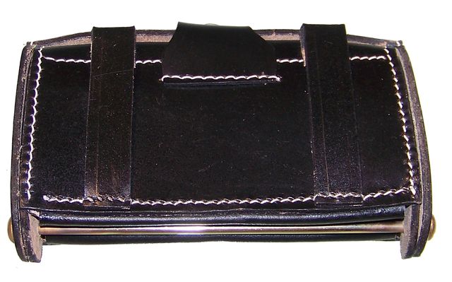 USMC 6MM LEE NAVY MCKEEVER CARTRIDGE BOX. Black Leather with Embossed USMC in Oval on Flap. 4 leathe...