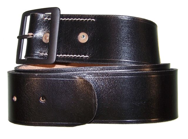 CIVIL WAR U.S. NAVY WAIST BELT. Black leather with black Japanned iron buckle. Measures 42" long, Reproduction.