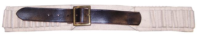 1880'S PRARIE BELT STYLE CARTRIDGE BELT. Cloth with Leather ends and Brass Buckle. Loops fit 45-70 Cartridge, Reproduction.