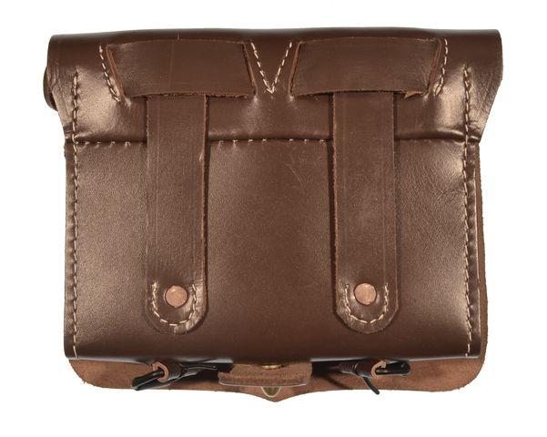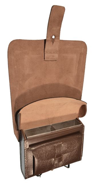 CIVIL WAR CONFEDERATE .58 CAL. CARTRIDGE BOX. Brown Leather, With Pocket For Cartridge Papers, Reproduction.