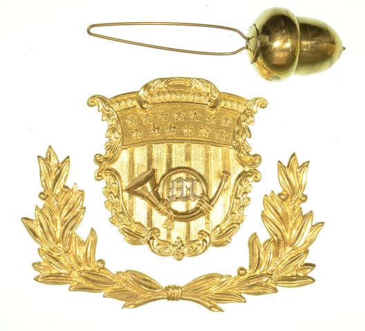1859 USMC ENLISTED MAN SHAKO, WREATH & POM POM SET, Acorn die is marked William H Horstmann & Sons, 1859, Reproduction.