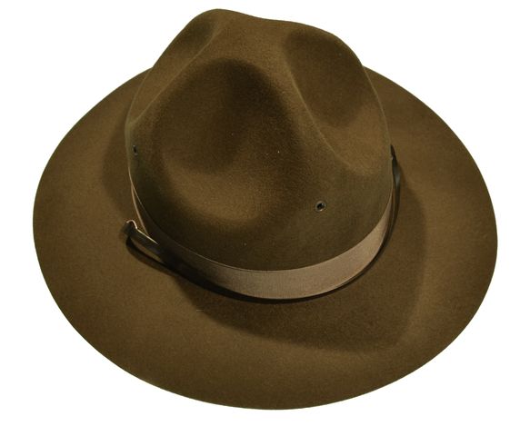 WORLD WAR I CAMPAIGN HAT. Olive Drab Wool With Chinstrap. Commonly Referred To As "DI" Or Montana Peak. Specify Size S, M, L, XL, Reproduction.