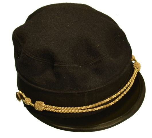 1895 US MODEL OFFICER'S CAP. Dark Blue Wool, Gold Chin Strap And Side Buttons, Leather Visor, Wool Worsted Hat Band .Specify Size Small, Medium, Large Or Extra Large, Reproduction.