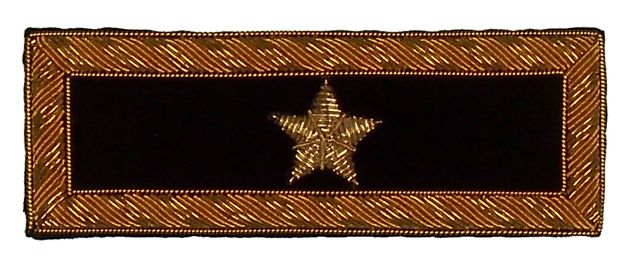 BRIGADIER GENERAL STAFF, One Star, Black Field. Shoulder straps have borders embroidered in gold bullion. Center designs are in gold or silver per regulations. Price is per pair, Reproduction.