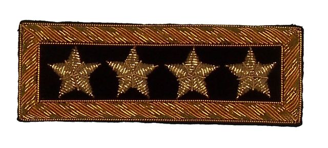 GENERAL STAFF, Four Stars, Black Field. Shoulder straps have borders embroidered in gold bullion. Center designs are in gold or silver per regulations. Price is per pair, Reproduction.