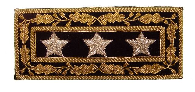 LT. GENERAL, Extra Fancy. Shoulder straps have borders embroidered in gold bullion. Center designs are in gold or silver per regulations. Price is per pair, Reproduction.