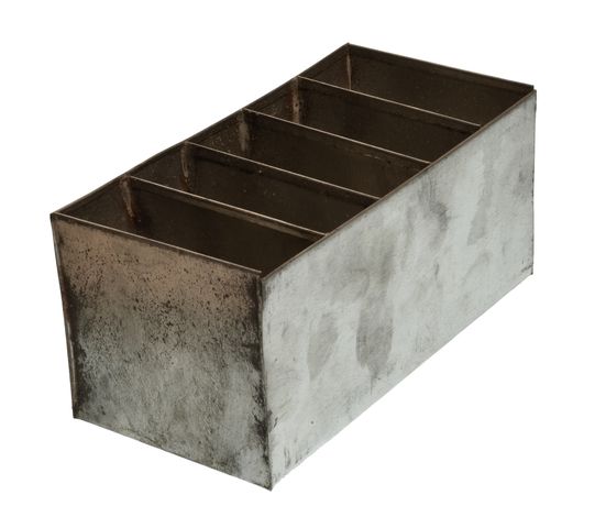CIVIL WAR CONFEDERATE ENFIELD CARTRIDGE BOX TIN INSERT. Hand fabricated tinned steel box has five separate compartments as was the original. Fits all Enfield type (Isaac & Campbell) cartridge boxes, Measures approx 6 L x 3 W x 2/34 H Reproduction.