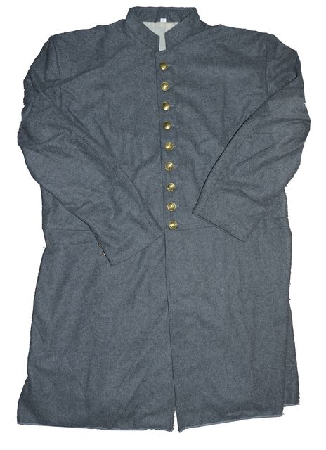 C.S. ENLISTED FROCK COAT, Natural gray wool. Half body muslin lined, 9 Brass CSA buttons. Specify size when ordering, Reproduction.