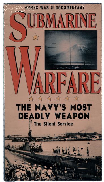 SUBMARINE WARFARE - THE NAVY'S MOST DEADLY WEAPON. Compilation of 3 documentary films produced by U.S. War Dept. 1942. Contains actual footage of the capture of a German submarine by the Atlantic Fleet. Attacks against Japan's Merchant Marine as well as air-sea rescue of downed aviators are vividly detailed. Running time 53 minutes - Black and White and Color VHS.