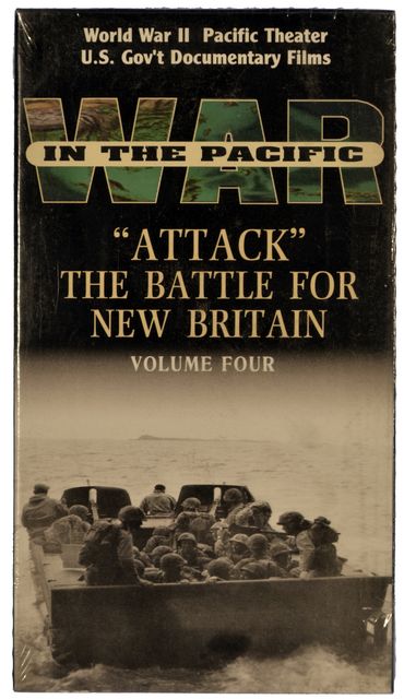WWII PACIFIC THEATER U.S. GOVERNMENT DOCUMENTARY FILM VOL. 4 - "Attack" - The Battle for New Britain. B25 Bombers soften up the Target area. Naval barrage & rocket fire clear the beaches. Landing craft, alligator and buffalo tanks move forward, followed by a massive assault of infantry VHS.