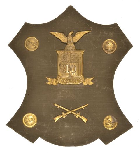 BANNERMAN PLAQUE, Historic Decorative Office/Den Wall Plaque manufactured and sold by legendary military surplus dealer Francis Bannerman. Each plaque is one of a kind with various original and reproduction insignia. 1930's-1940's era manufacture.