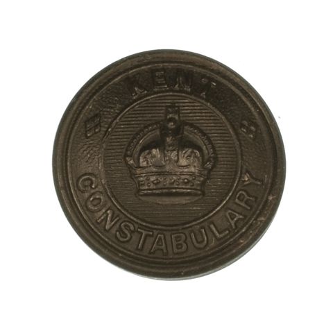 POLICE DEPARTMENT BUTTON, Black composite with brass eye shank. Marked "Kent Constabulary" with Crown in center, Original.