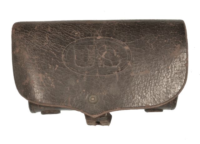 HAGNER 2ND MODEL CARTRIDGE BOX, Embossed U.S. Black leather with 3 rows of 8 loops for 50/70 cartridges, Original.