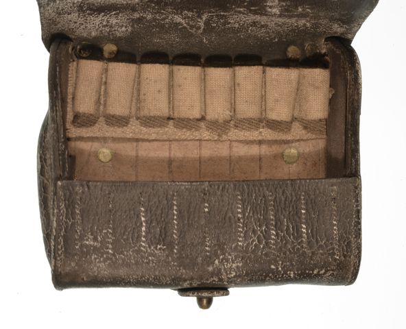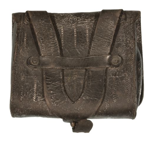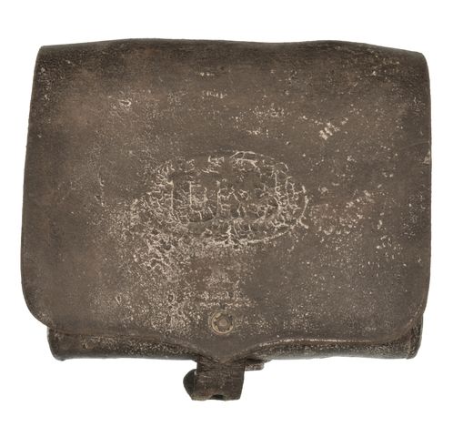 HAGNER 1ST MODEL CARTRIDGE BOX, Embossed U.S. Black leather with 3 rows of 8 loops for 50/70 cartridges, Original.