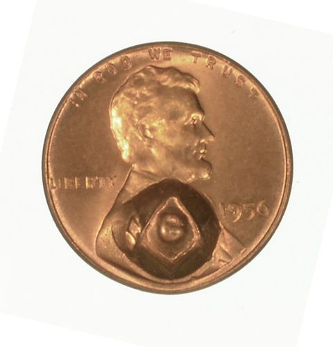 MASONIC FRIENDSHIP NEW MEMBER PENNY, Masonic emblem struck into the lower portion of a 1956 penny. Appears near uncirculated, Original.