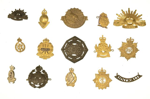 AUSTRALIAN 15 PIECE BADGE LOT, Original.