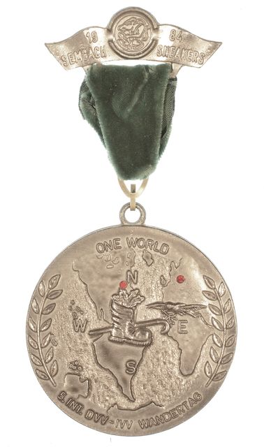 1984 SEMBACH SNEAKERS HIKING CLUB AWARD, 3" Medallion on ribbon, Original.