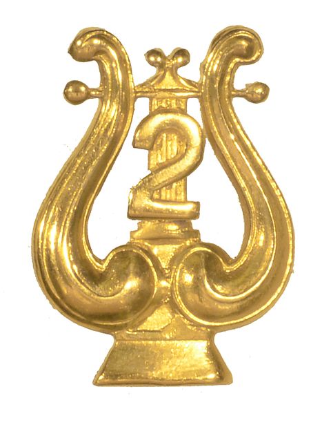 WORLD WAR I BAND COLLAR INSIGNIA, Gold Plated with number 2, Original.