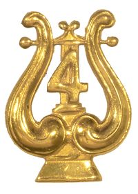 WORLD WAR I BAND COLLAR INSIGNIA, Gold Plated with number 4, Original.