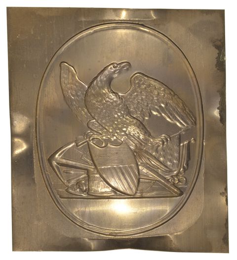 1815-1825 USMC CAP OR SHOULDER PLATE, 4 x 4 1/2. Copper, Reproduction.