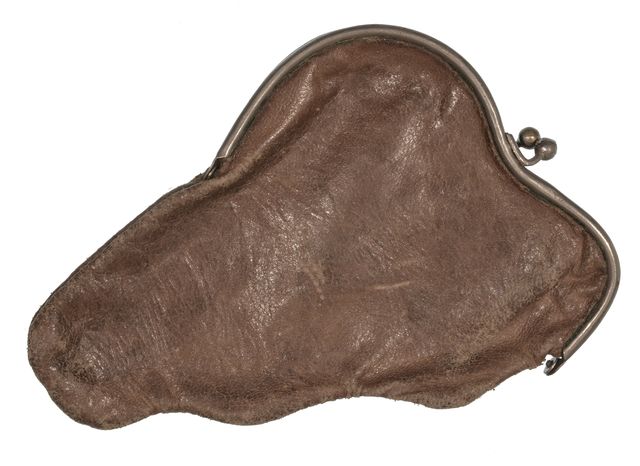 SMALL SIZE LEATHER PISTOL PURSE, 4 3/4 long with hinged opening, Original.