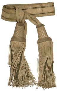 SILVER BULLION & GREEN SASH, 1 7/8" Wide, 84" long with 7" tassels. High quality vintage sash in great condition. Has reinforcing backer on middle 41" of sash, Original.
