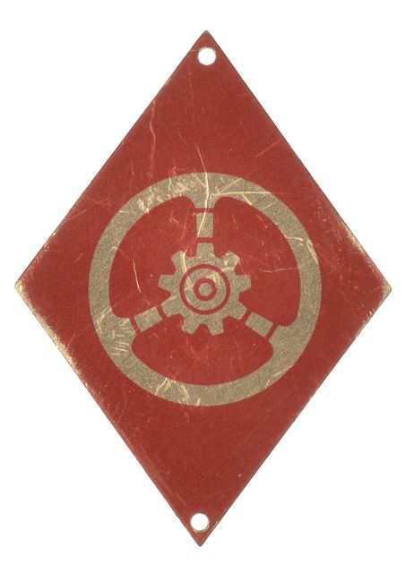 SPANISH ARMY COLLAR INSIGNIA, Automobile Service, World War II thru Cold War Era. Aluminium with Etched Insigina in Center, Original.