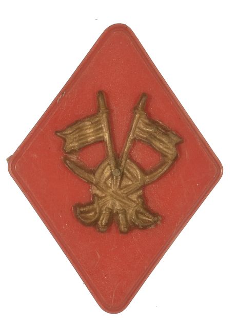SPANISH ARMY COLLAR INSIGNIA, Cavalry, World War II thru Cold War Era. Plastic with Colored Insigina in Center, Original.