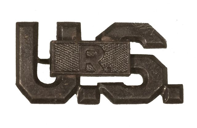 U.S. COLLAR INSIGNIA, Blackened with R, Pin Back, Original.