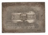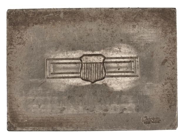 WWI ERA AWARD BADGE INSIGNIA STAMPING DIE & TRIM TOOLS, 1 3/4" Across. Die makers name on block eligible. New York address. Trim plate marked S & D INC. 114 Fulton St. Also marked DVS, Original.