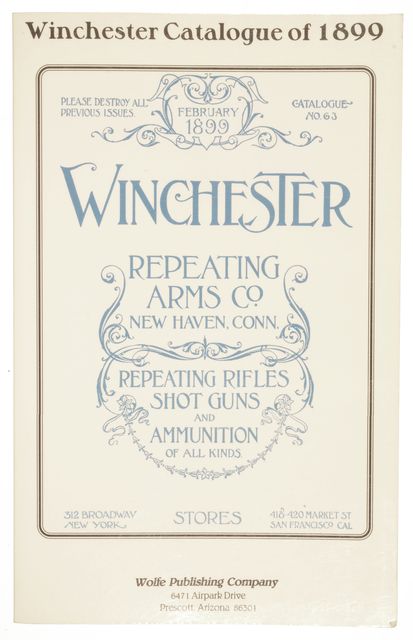 1899 WINCHESTER CATALOG, Reprint by Wolfe Publication. Catalog and price list of Winchester rifles, shotguns, sights and parts, Reproduction.
