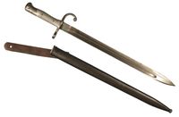 1891 ARGENTINE MAUSER BAYONET, With Scabbard and Hanger. Matching numbers on bayonet and scabbard. Marked "Weyersberg Kirschbaum & Co". Fine condition. Modelo Argentine 1891 markings ground off, Original.