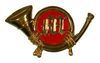 M1859 USMC E.M. CAP ORNAMENT, Silver M on Red Leather Field. Stamped Brass Horn with Attaching Wire...